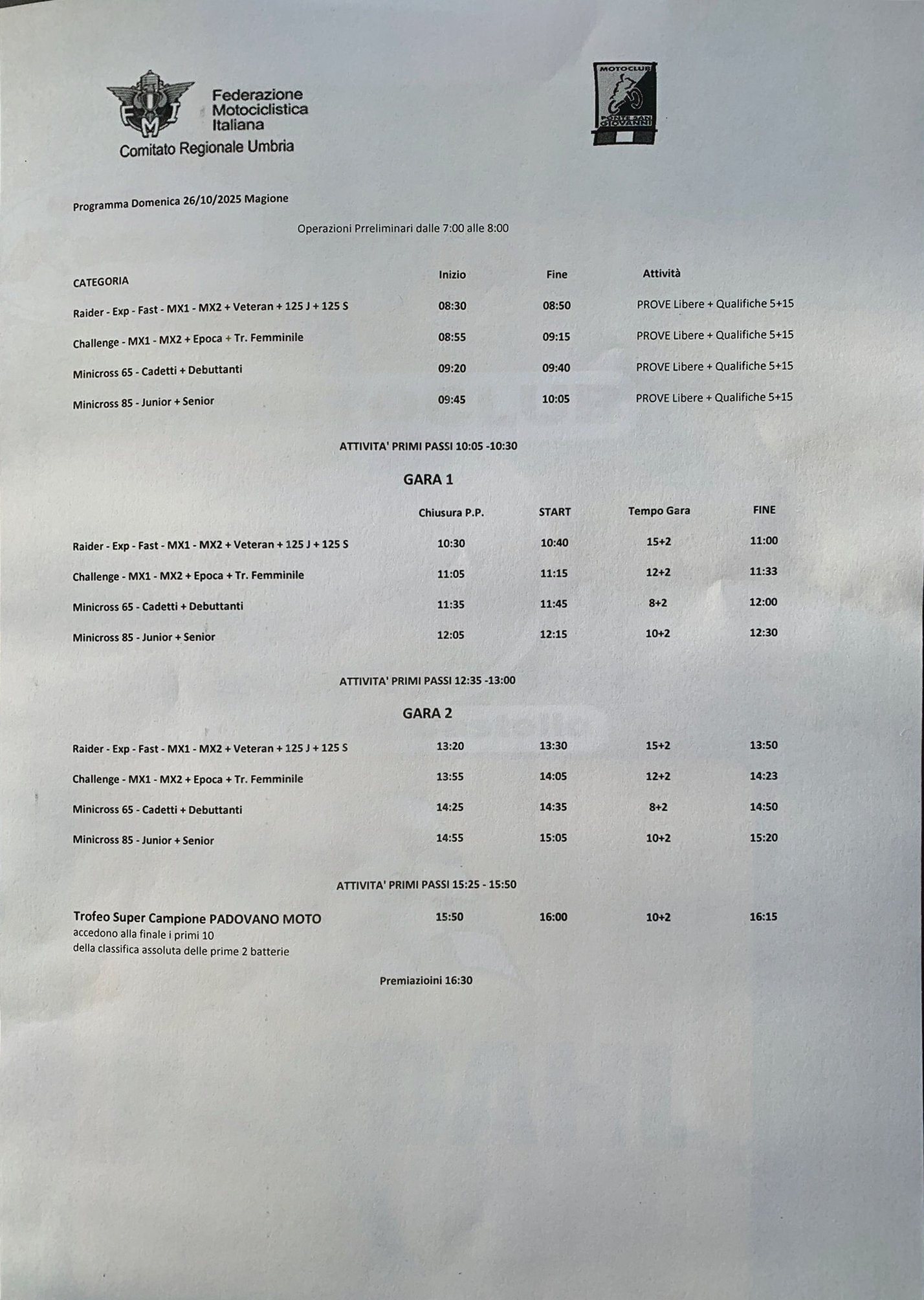 in allegato trovate il programma e gli orari per le gare di domani a Magione.