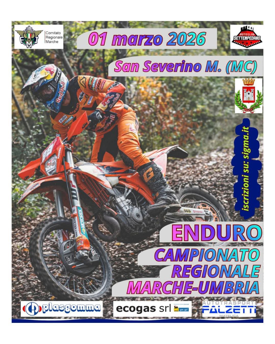 Ieri, domenica 1 marzo, i motori sono tornati a ruggire a San Severino Marche per la tappa d’esordio del Campionato Regionale Enduro FMI 2026 Umbria-Marche! Un ringraziamento speciale va al Moto Club Settempedano per l’impeccabile organizzazione.